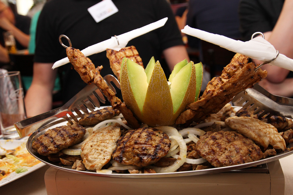 Nach diesen 10 Abmahngründen konnten sich alle Teilnehmer am Griechischen Buffet stärken. Für eine bessere Organisation des Restaurants und für ein ungestörten Ablauf während des Vortrags, haben wir uns dieses Mal nämlich für ein zeitgleiches und gemeinsames Essen im Anschluss an die Präsentation entschieden. Bei Essen und Ouzo konnten sich somit alle noch in geselliger Runde kennen lernen und über verschiedene Online-Marketing Themen austauschen. Auch Frank Stange konnte dem ein oder anderen noch seine Fragen beantworten.